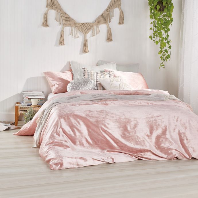 blush colored velvet bedding